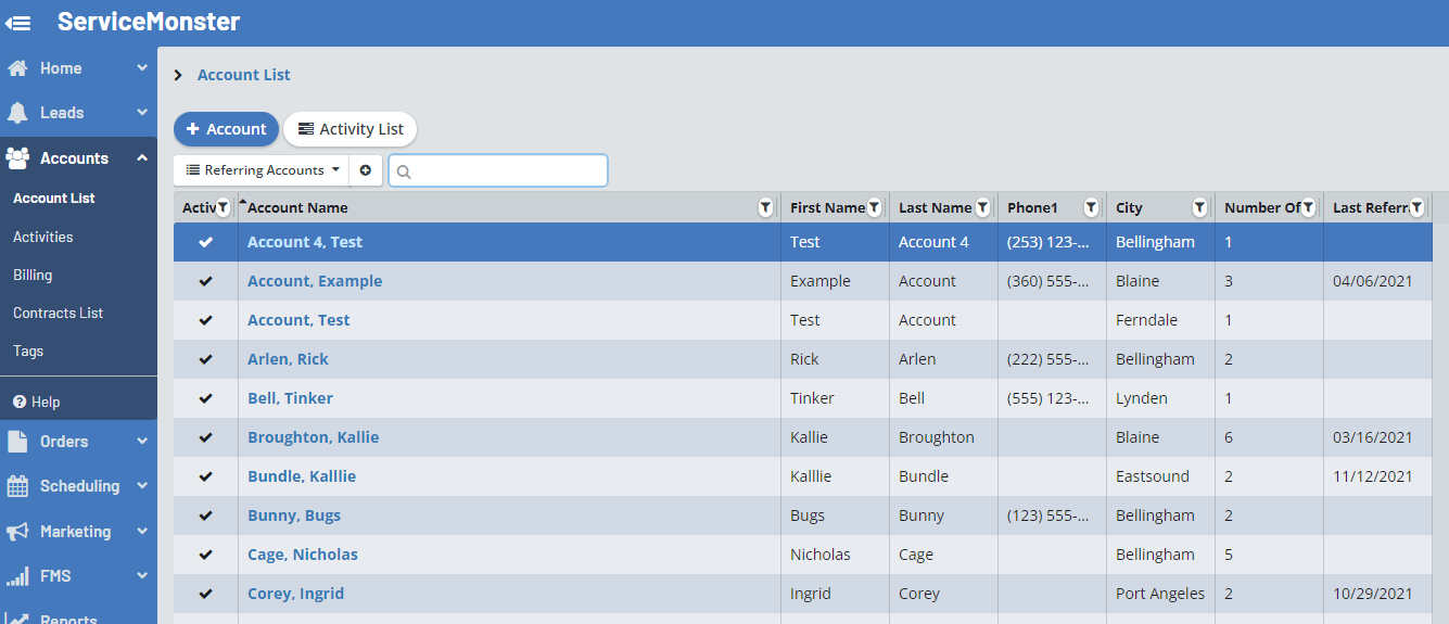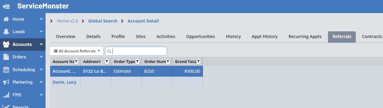 If you use an account within ServiceMonster as a lead source, that is an account referral (One account has referred another to you). You can track account referrals within ServiceMonster to see who is bring clients to you.