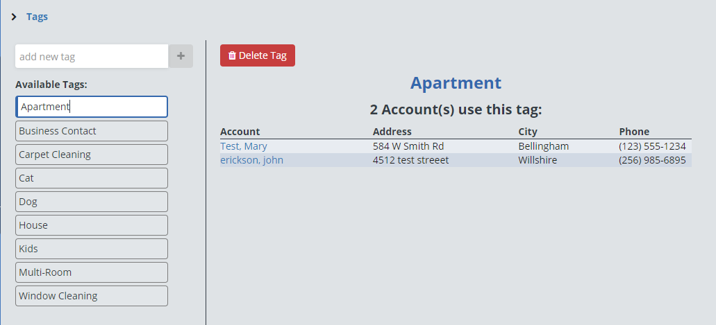 Here you can see a full list of accounts that have that tag. You can delete the tag by clicking on the “Delete Tag” button.