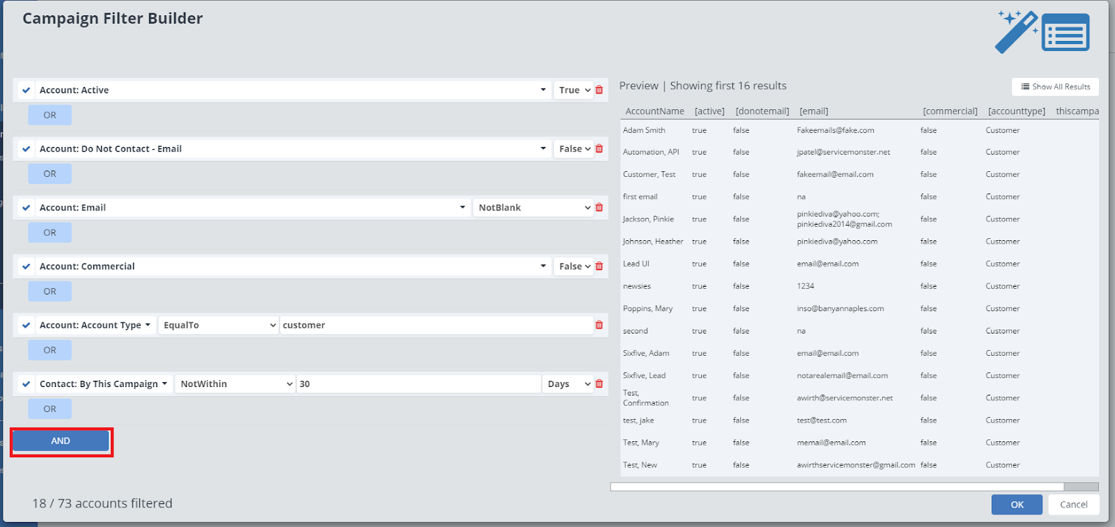To add in a new filter, click on the “And” button.