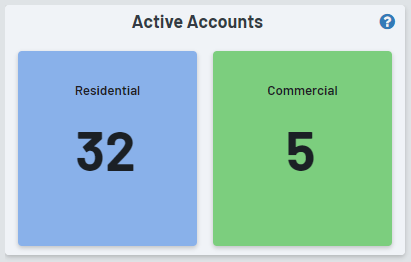 Shows the current total count of active accounts broken down by the type. Hovering over total will show the count of the previous year