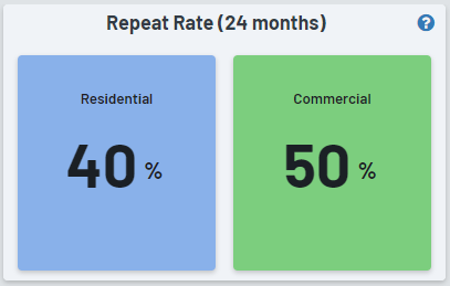 Shows the number of customers that you have serviced multiple times in a 2 year period, with a Residential and Commercial breakdown. In many industries, this two-year window helps identify whether you “retained” the customer or not.