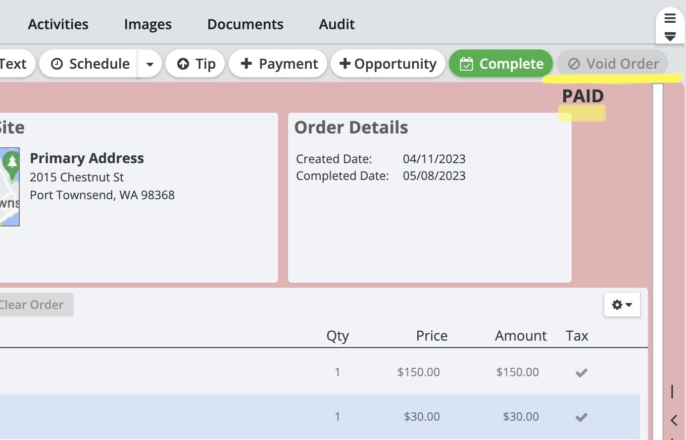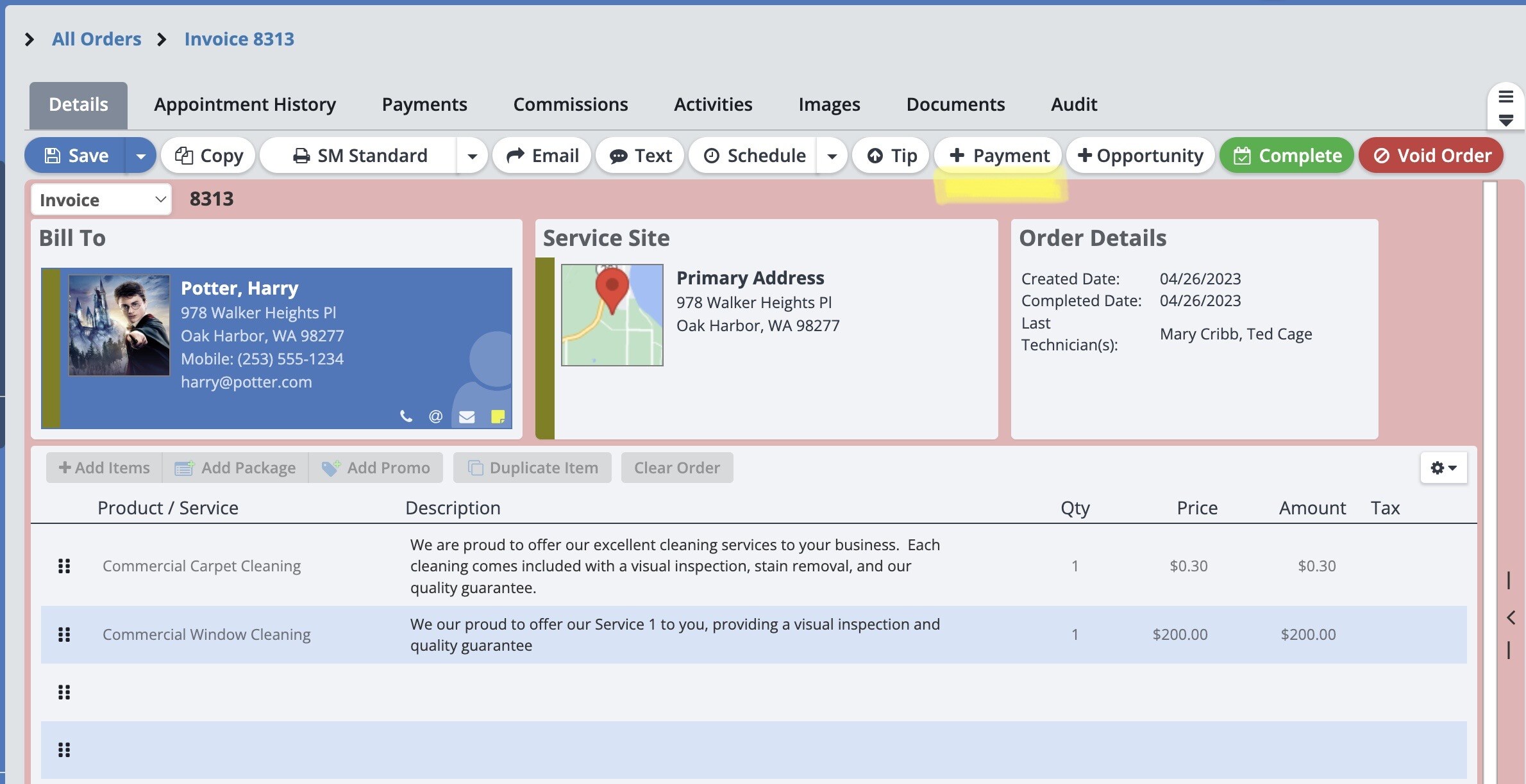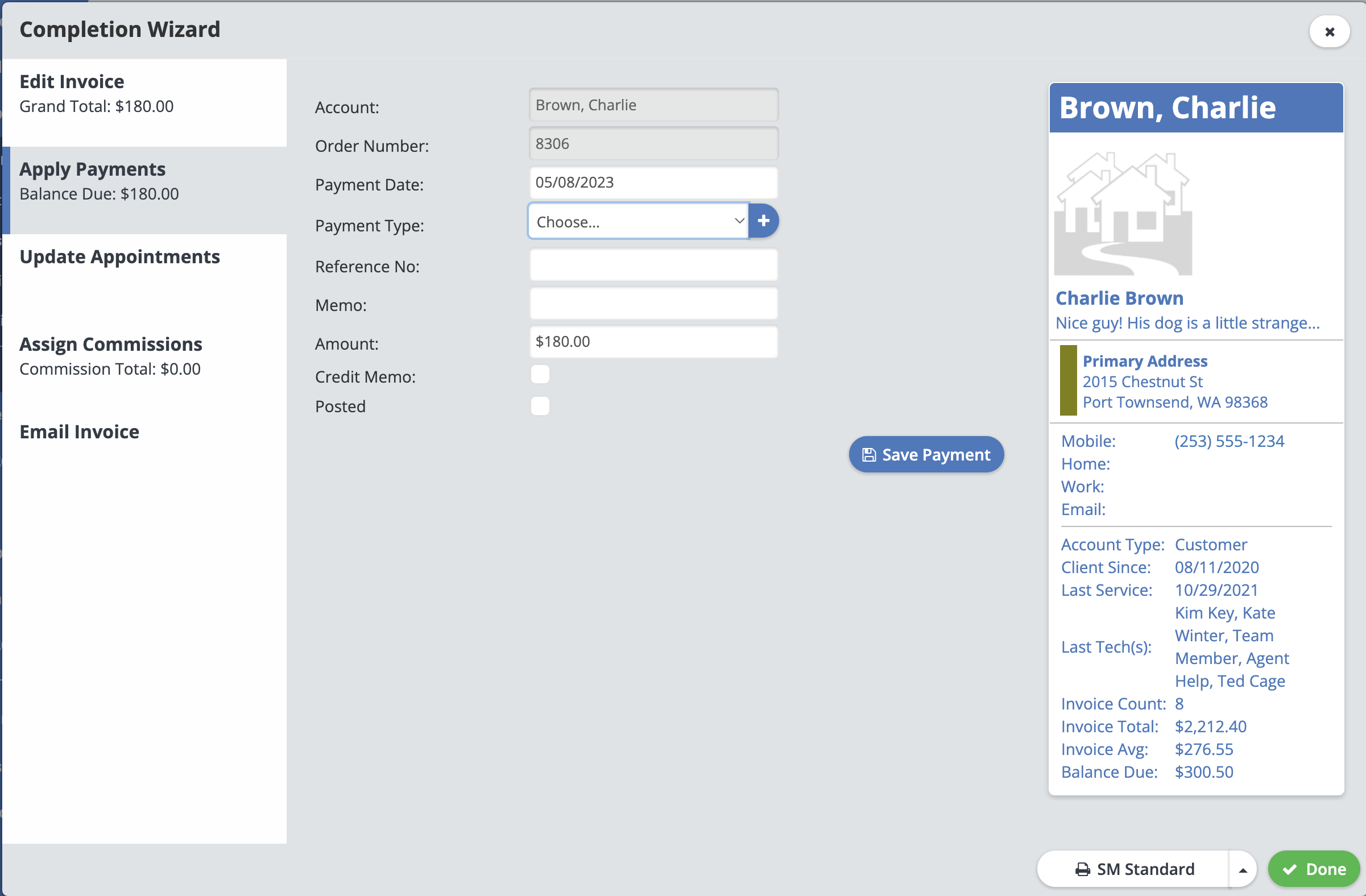 We recommend recording payments be a part of your order completion workflow. ServiceMonster's Completion Wizard is the best way to complete an order.