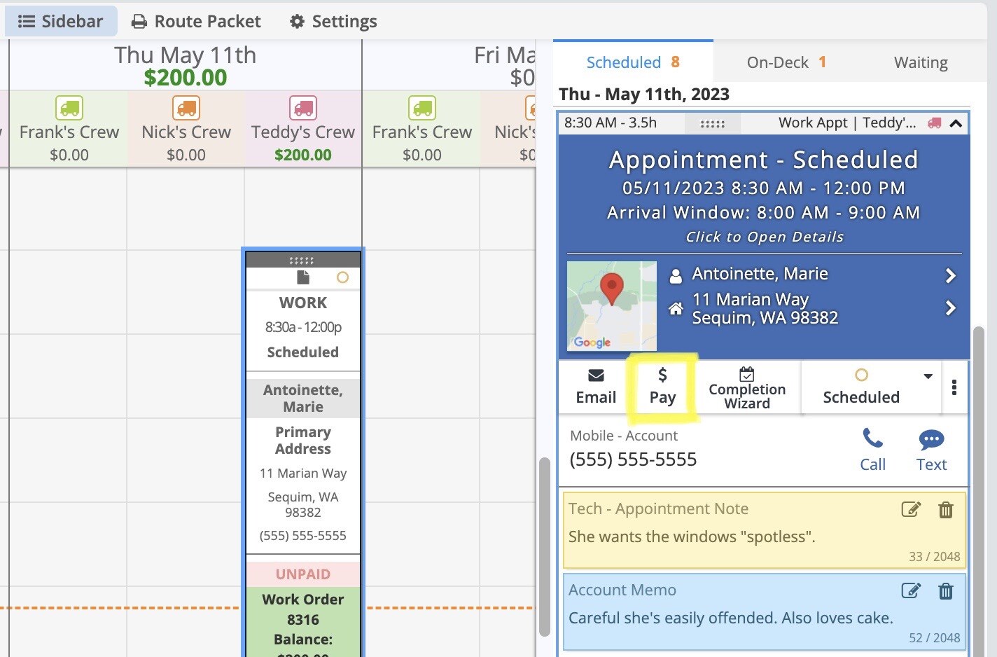 You can easily record a payment from the Schedule by clicking on an appointment to open its details in the Schedule Sidebar.