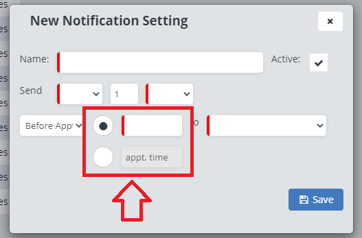 Before/After Appointment: Pick if the message will be sent before or after the appointment.