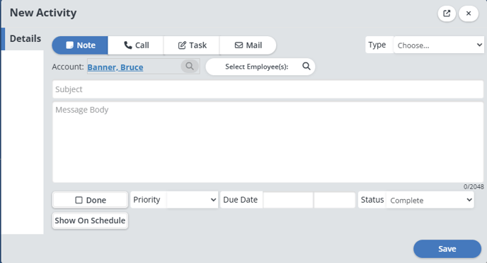 In order to attach a file, you will need to have already created an activity. You can create an activity in a variety of places: Leads, Orders, Schedule, Accounts, and even the Activity List. To learn how to create an activity, click here.