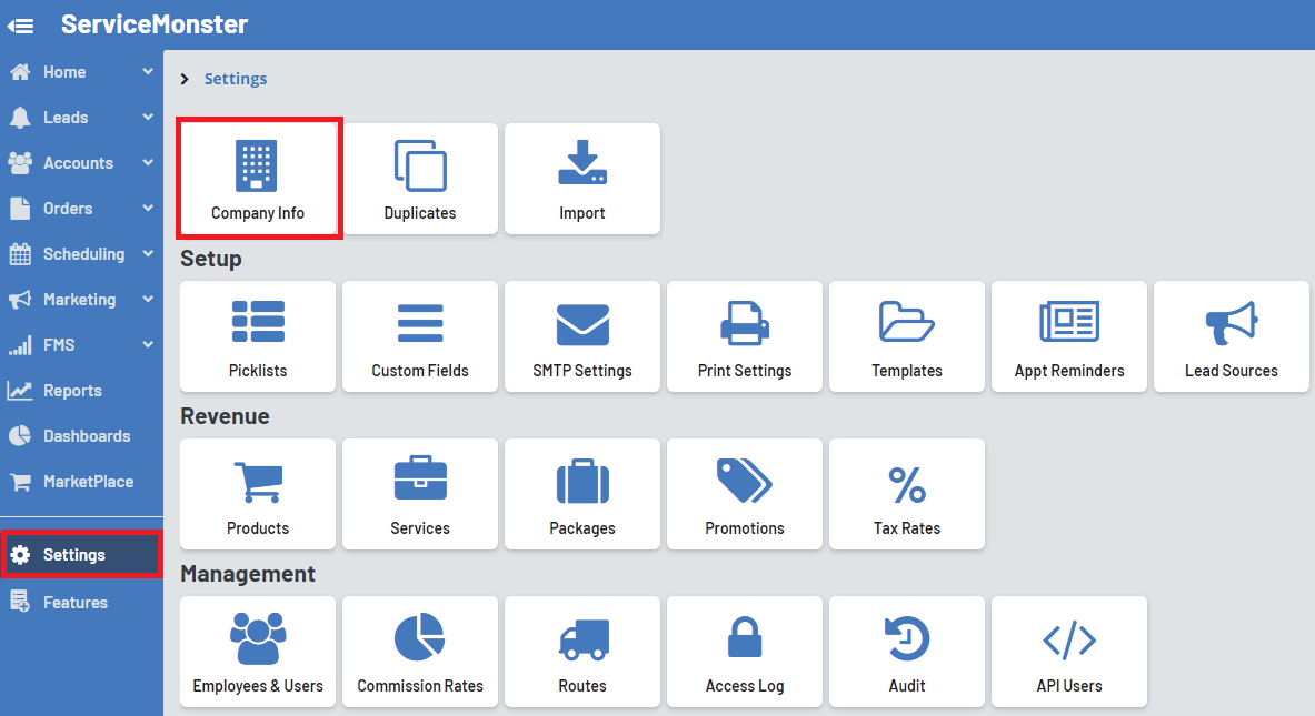 One of your first steps in ServiceMonster is to get all of your company info into the system. Our system customizes your Estimates, Work Orders, and Invoices using this information as well as your Merge Fields.