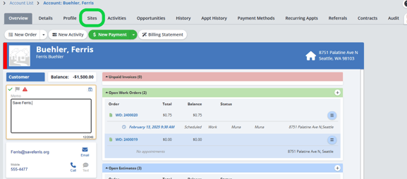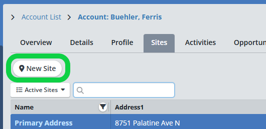 Go to the account where you want to update the address, and click on the “Sites” tab