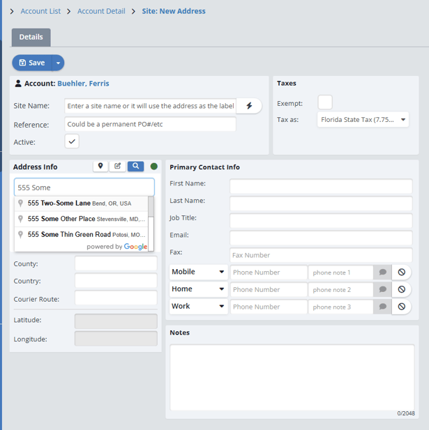 In order to change the customer’s billing address without editing the information on previous orders, you will need to create it as a new site and set that as the default. If you simply go into the current site address and change it, it will change the information on past orders.