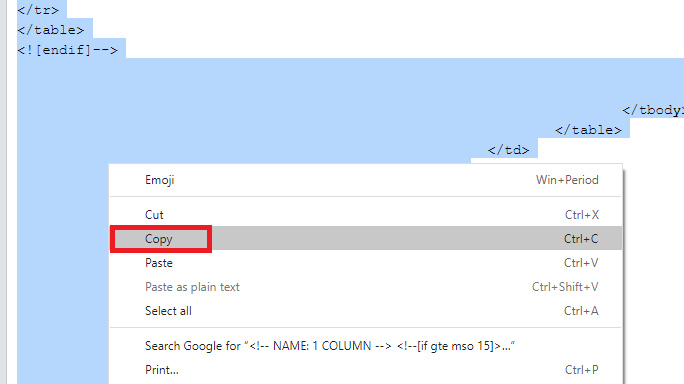 This will allow you to view the coding for this template. Select all of the code by clicking and dragging your mouse down, highlighting all of the text.