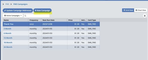From the Main Menu, select the "FMS" tab, then select the "FMS Campaigns" icon.