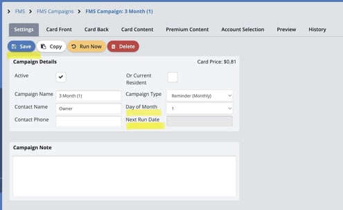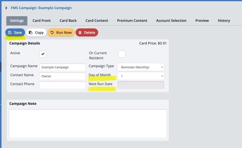 Be sure that your desired run date is correct, and then select "Save" when you are finished.