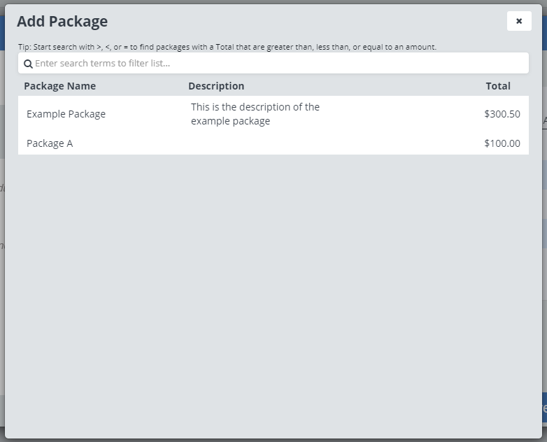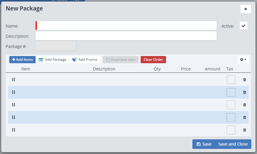 Packages are an easy way to advertise multiple services or products to your client at once, or you could create packages of common combinations of services or products that your clients make to easily select when creating an order.