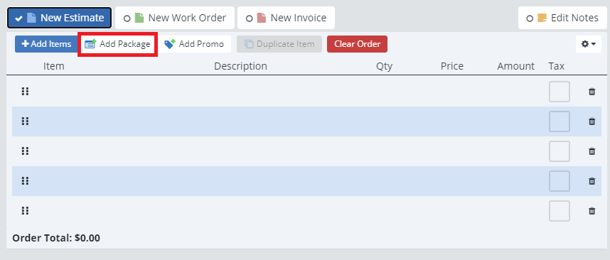 When creating an order you can easily add a package. All that you have to do is select “Add Package” when building an order.