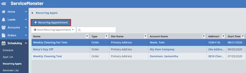 A recurring appointment, within ServiceMonster, is an appointment that is automatically scheduled for you based on recurrence settings that you select.