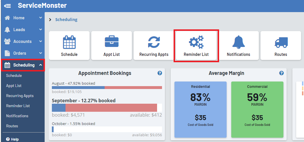 To do so, click on “Scheduling” in the Main Menu, then select the “Reminder List” icon.