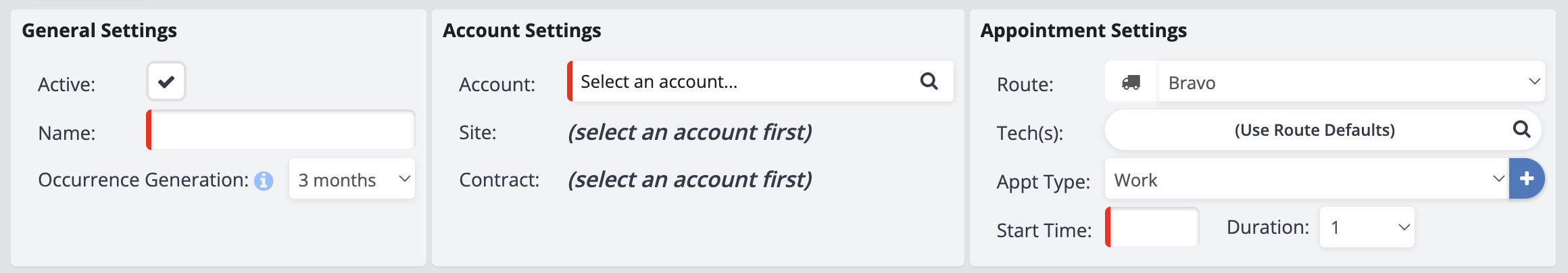 Start Time: The time this appointment will start at each time it’s scheduled.