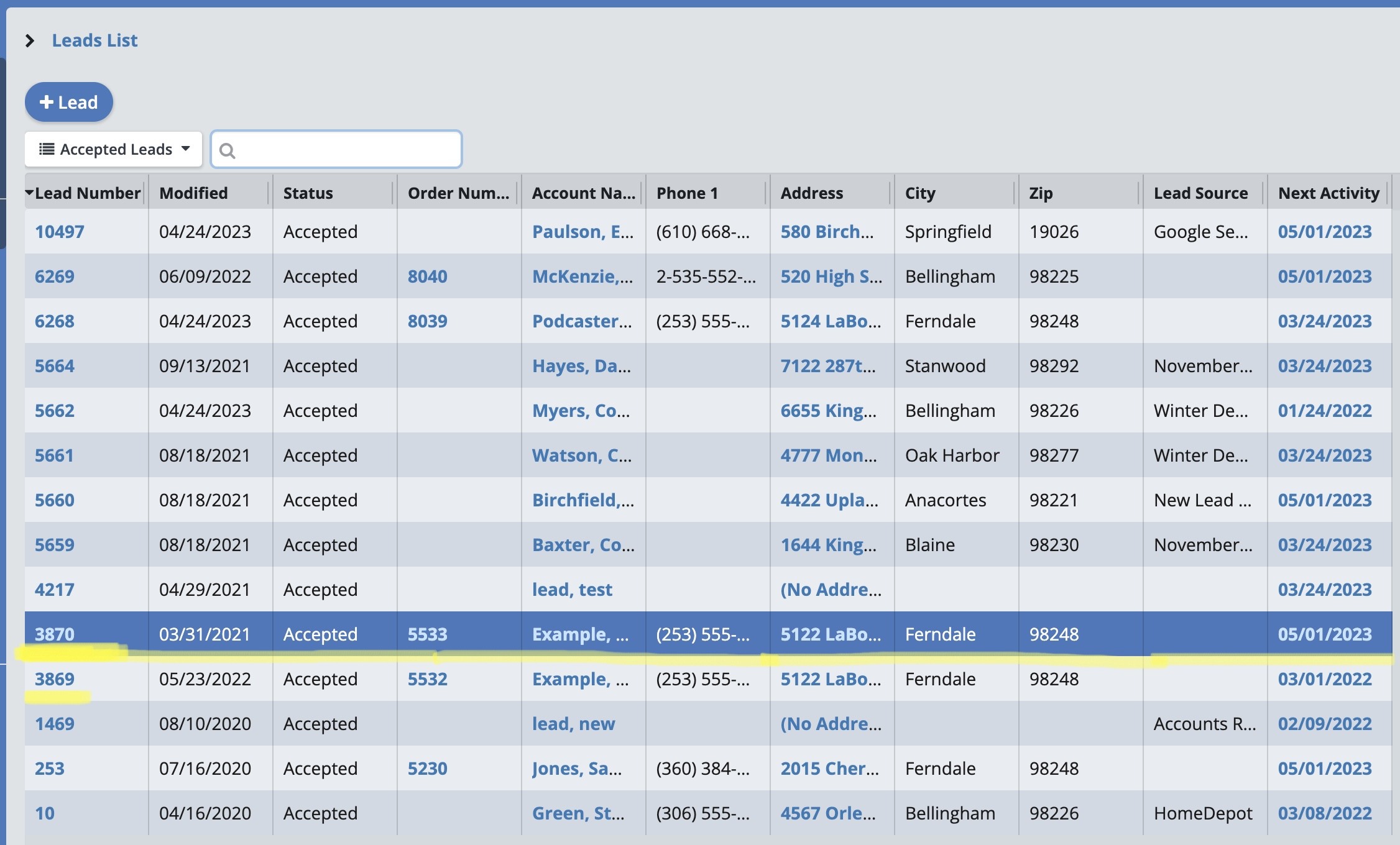 The Lead Sheet will find and prompt you to replace any duplicate Lead Account with the original Existing Account.