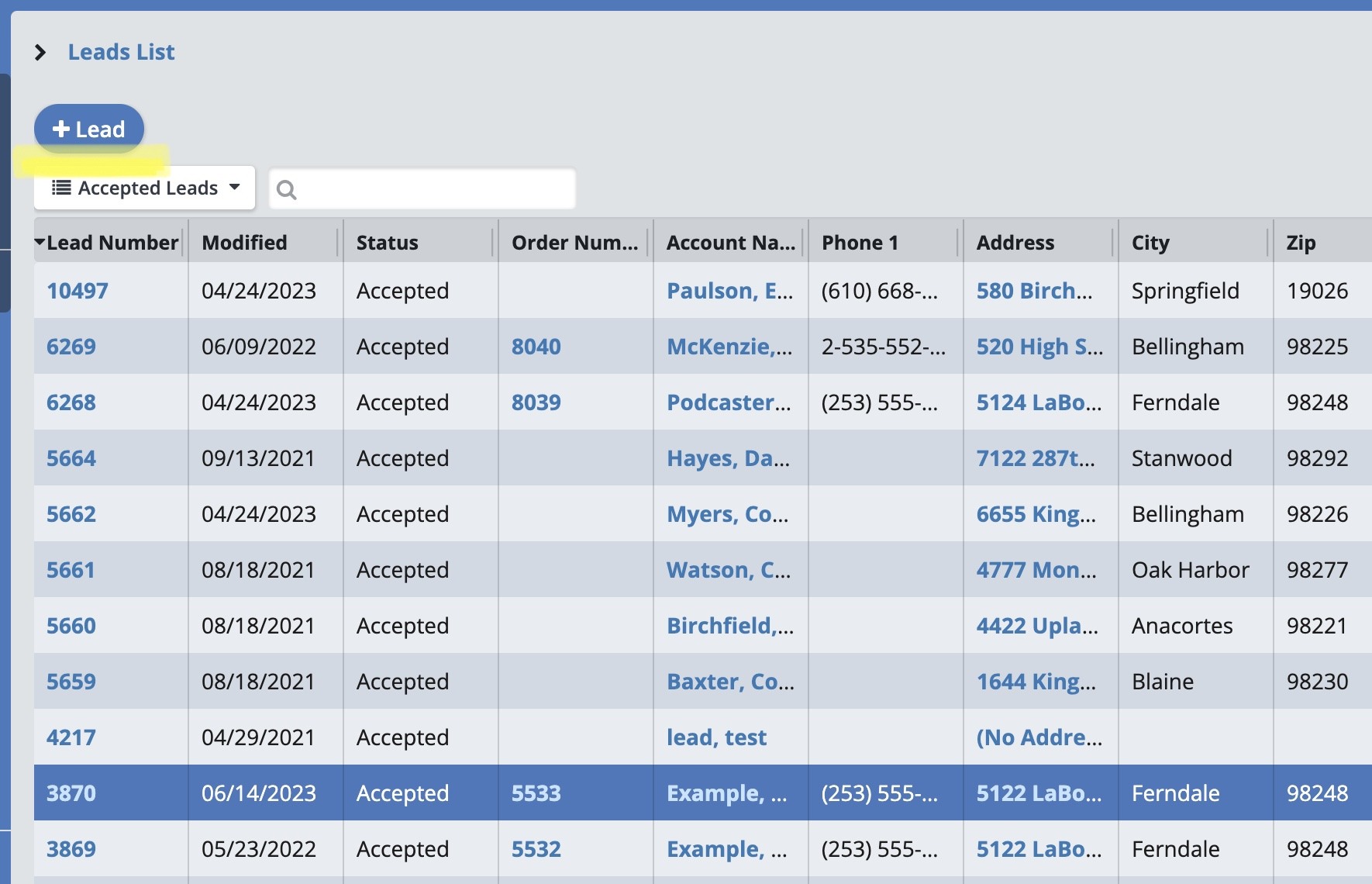 From ScratchTo make a new lead from scratch, click on the “+ Lead” button on the Leads List page.