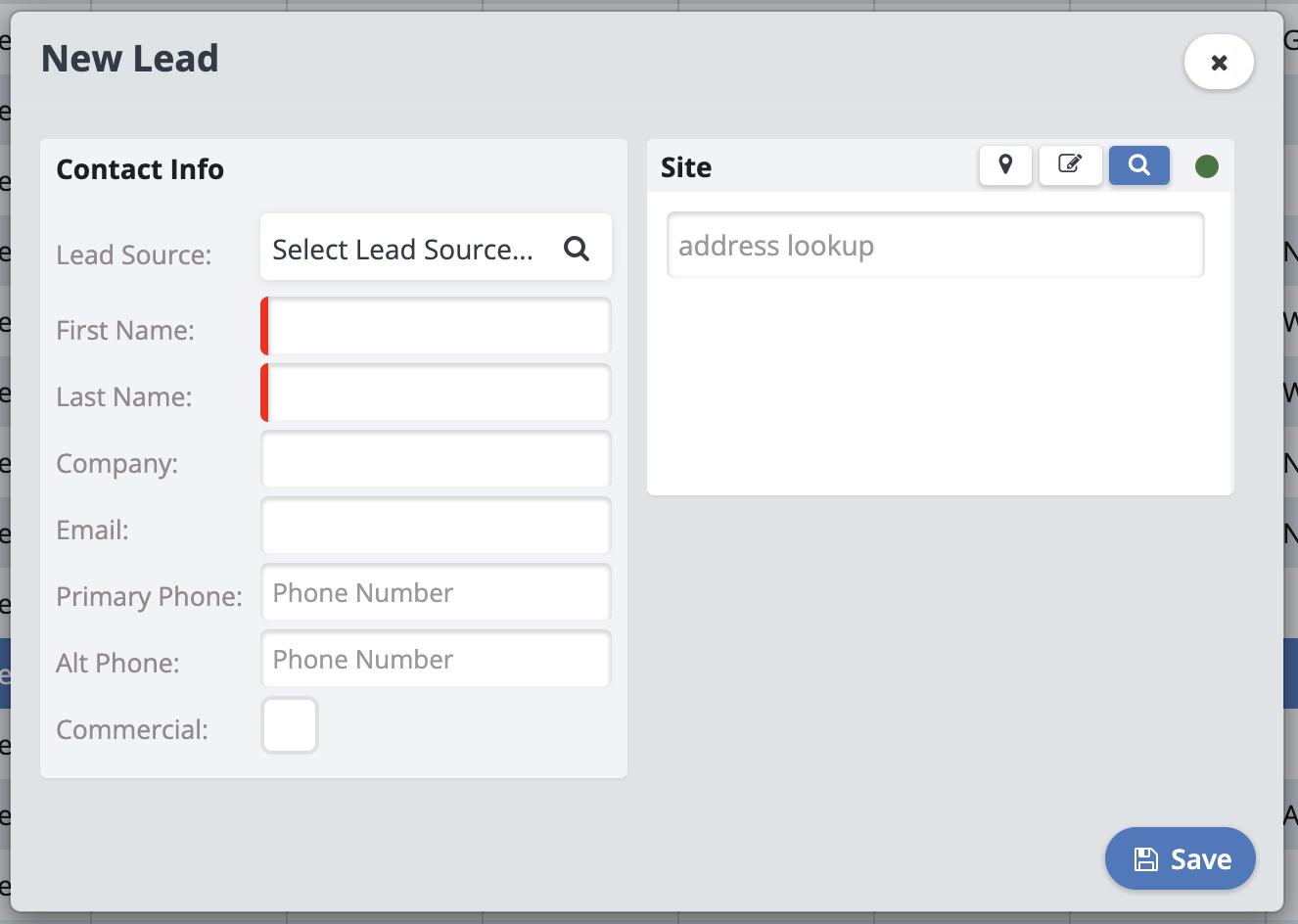 Company (Required for Commercial): The company name of the client associated with this lead (Not required for residential lead).
