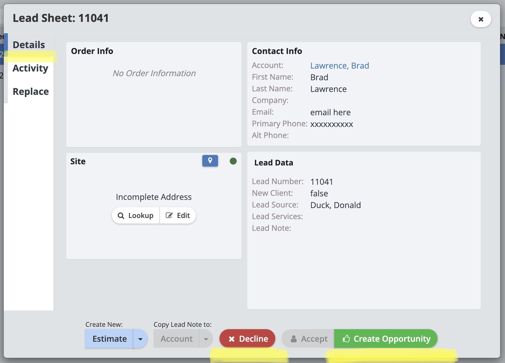 Finally, decline or approve the lead by clicking on the “Decline” or “Create Opportunity” buttons.