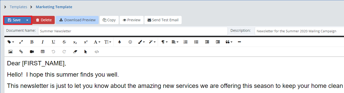 If you are running an Email or Letter Marketing Campaign and want ServiceMonster to send out emails or create letters for you, you will need to use a Marketing Template.