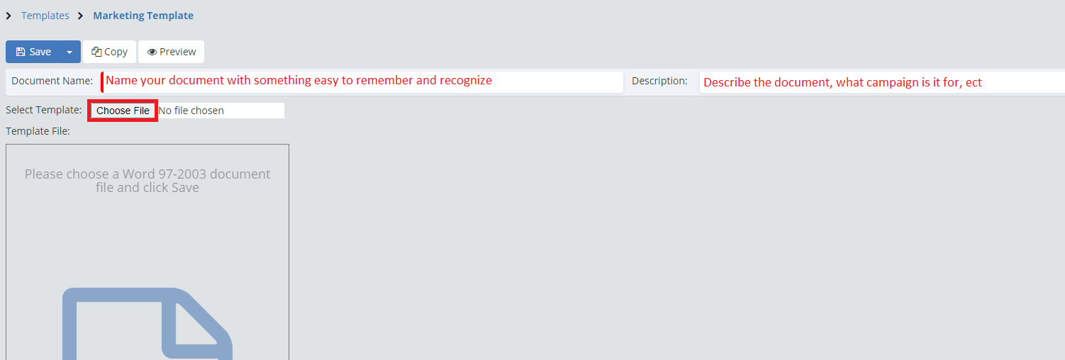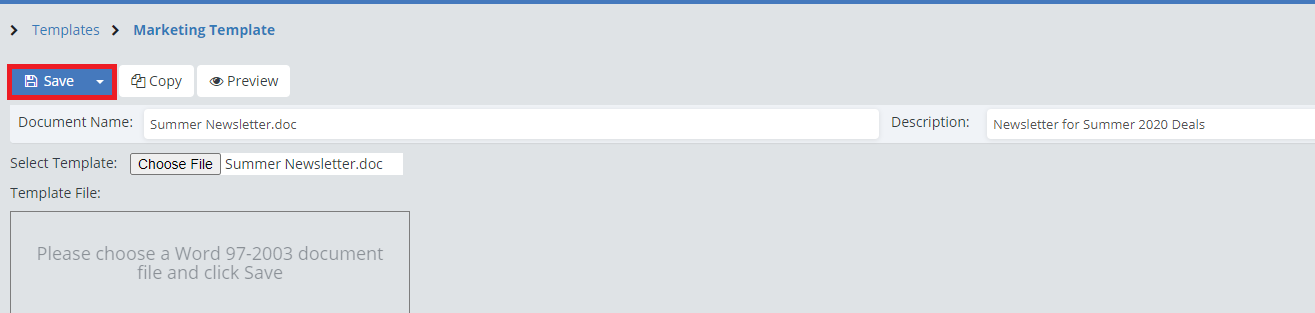 To create the Marketing document, simply create your document in Microsoft Word and save it as a Word 97-2003 document.