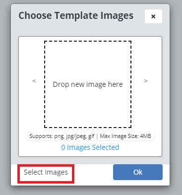 Here you will be able to choose from a previously uploaded image or can upload a new photo by clicking on the "Upload Images" button.
