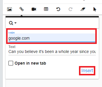Then paste in the URL and click "Insert"