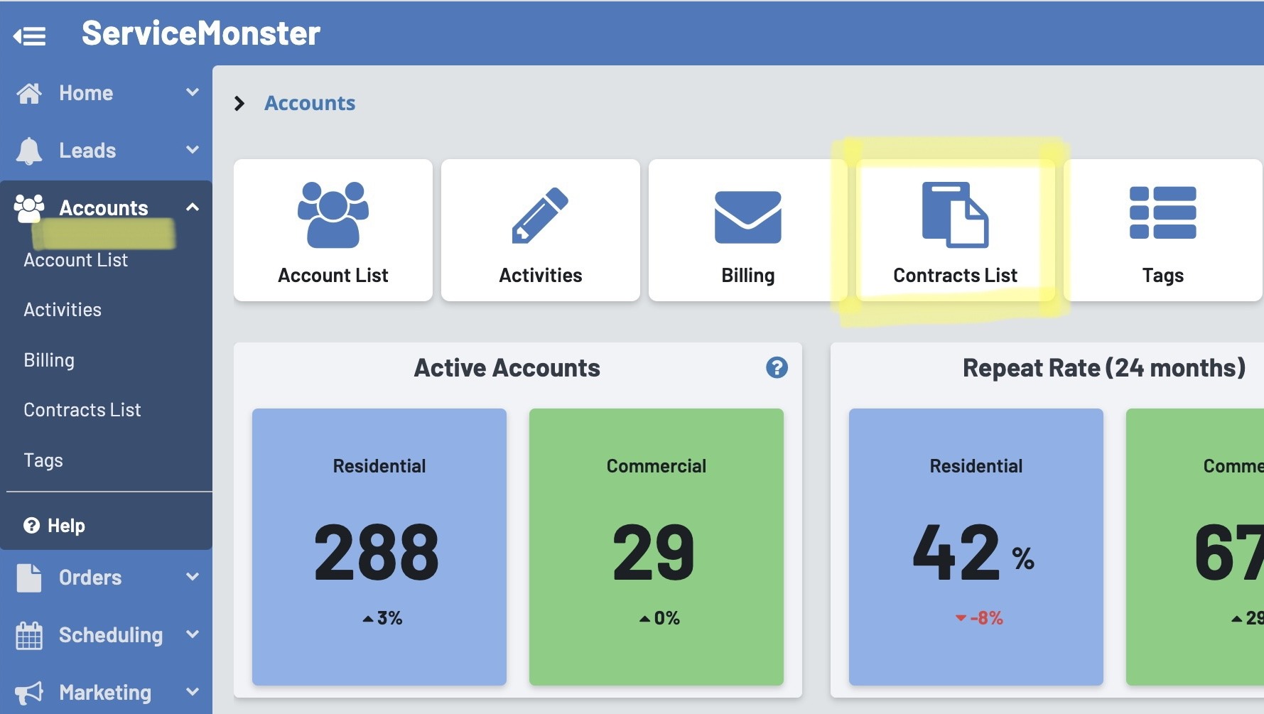 In ServiceMonster, a contract is a service agreement between yourself and a client that you will provide a certain number of services in a specific time frame for a consistent price.