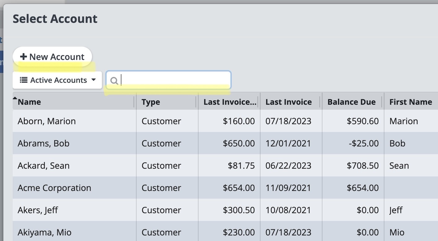 Search for and select the account this is associated with or create a new account by clicking on the “+ Account” button.