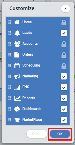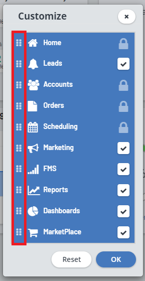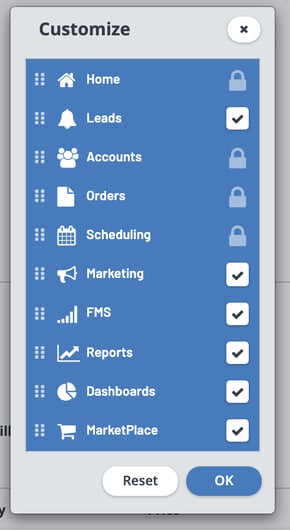 You can customize your ServiceMonster side menu to feature the areas of the app you use the most. To do this, click on the “Customize” button at the bottom of the left-hand side menu.