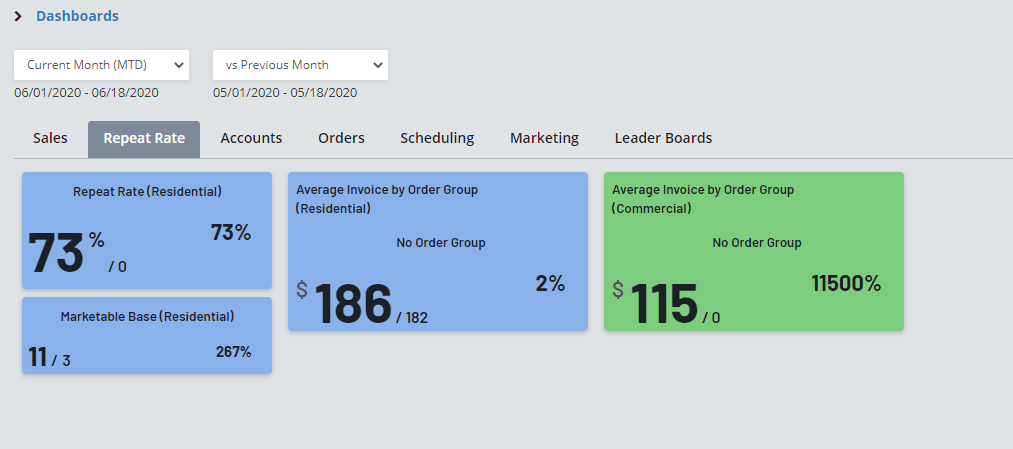 Repeat Rate (Residential): Your repeat rate for residential accounts, and percentage growth.