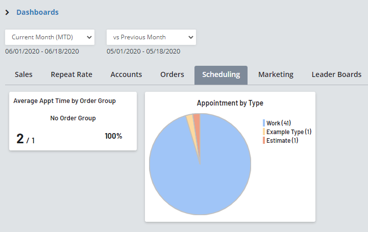 Appointment by Type: A pie chart where your appointments are divided up by appointment type.