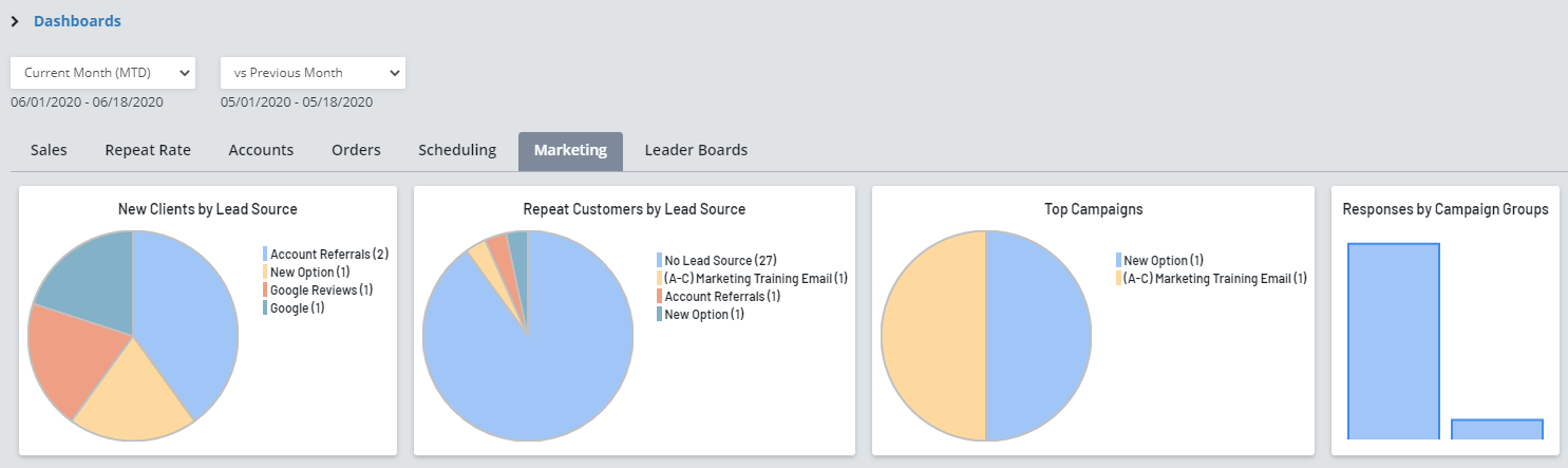 New Clients by Lead Source: A pie chart dividing up your new clients by Lead Source.