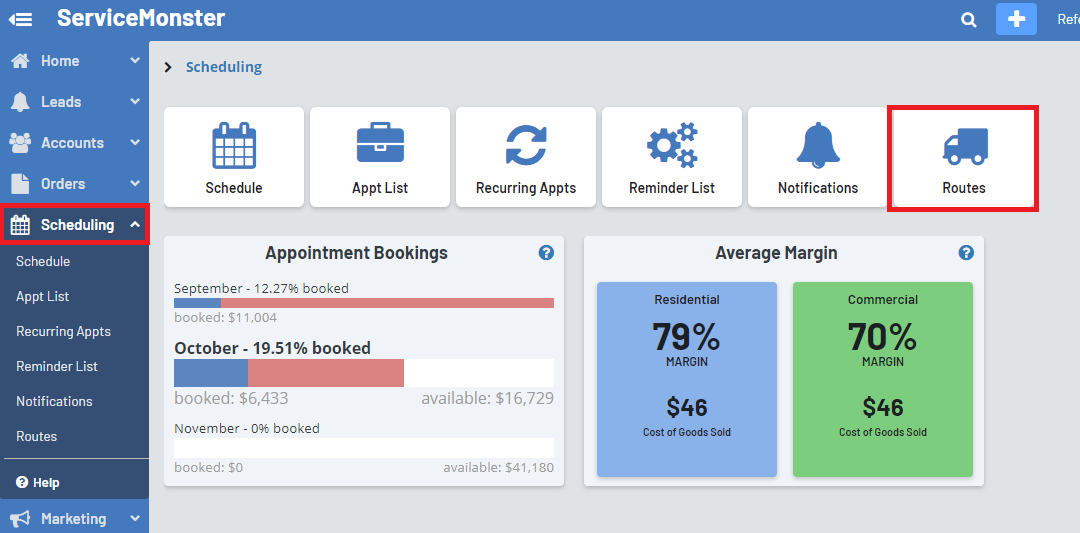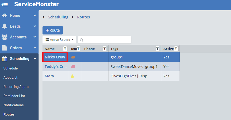 To deactivate a route, open your routes by selecting “Scheduling” in the left-hand side menu, then select “Routes”.