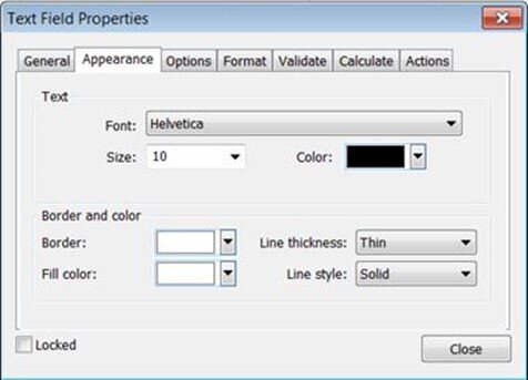 Appearance – Allows you to change the font, size, and color of the text and the border and fill colors of the actual field.