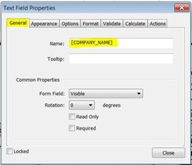 - Right-click the field you created > Properties. Here you can adjust different parts of the field such as appearance and format of the text under the following tabs: