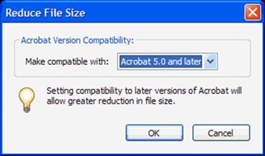 For Compatibility, choose the lowest PDF version necessary to open the files you create. Our PDF uploader only allows PDF version 1.6 (Acrobat 7.x) or older.