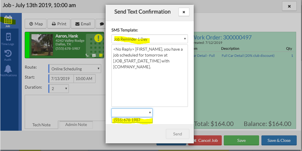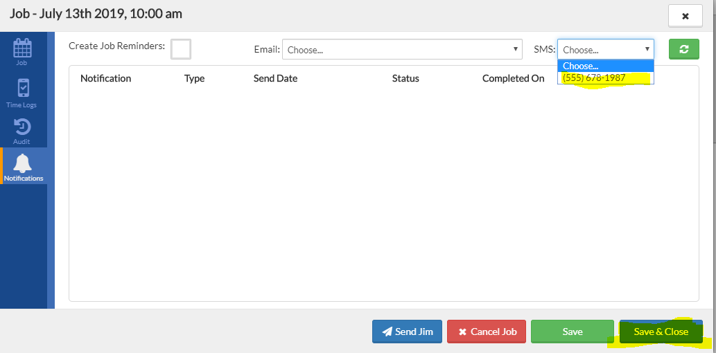 This has happened to almost all of us. You have just created a job and want to send a job confirmation. But when you select the SMS dropdown, no phone numbers are displayed. What happened? The number failing to show up in the dropdown is simply a matter of allowing text messaging for the Account phone number.