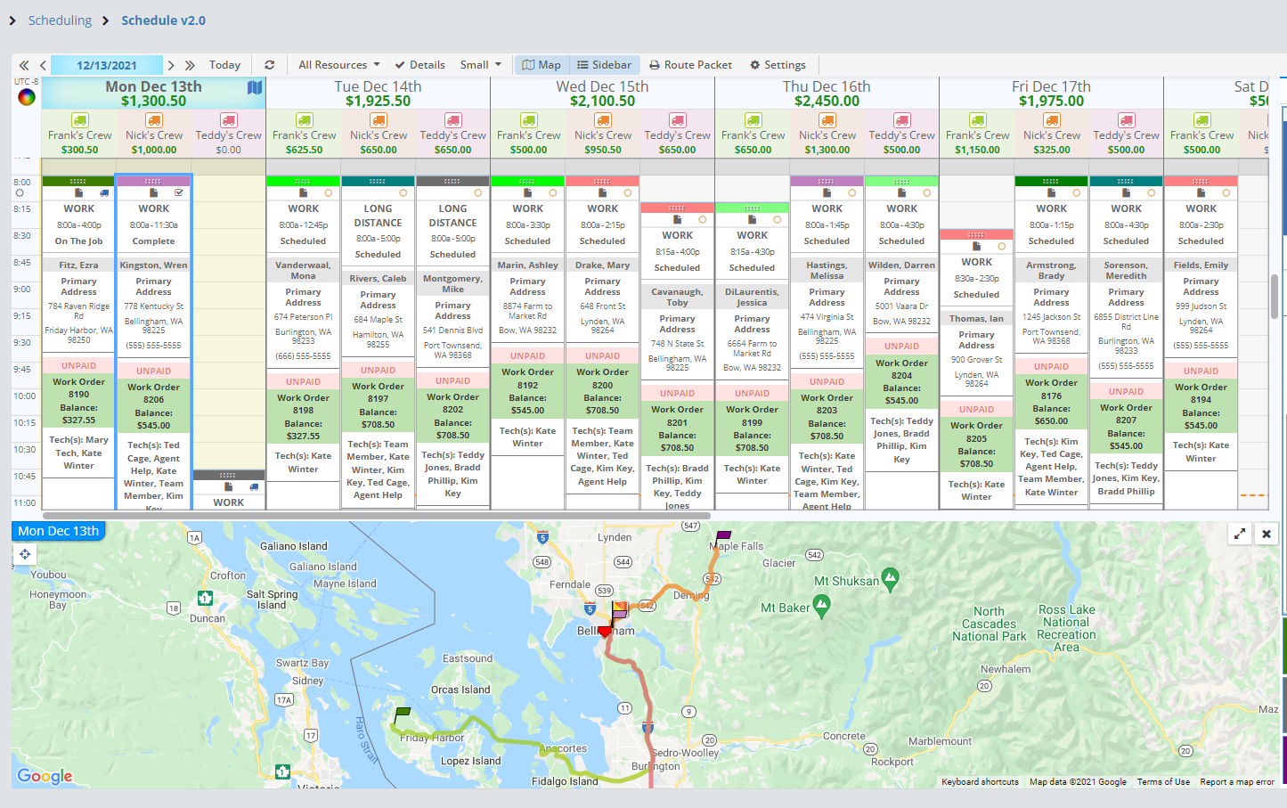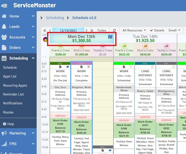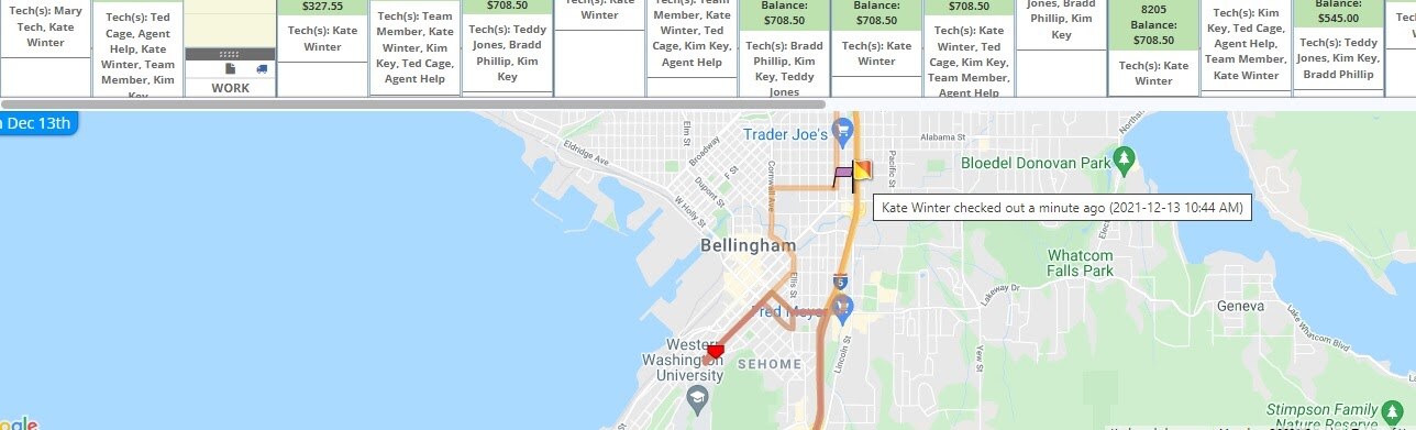 When a user checks in or out of an appointment on the ServiceMonster mobile app, their location will be flagged on the schedule map.
