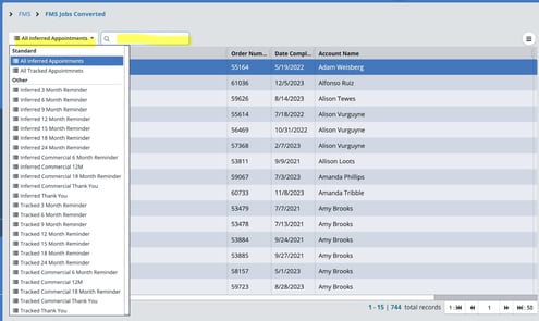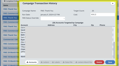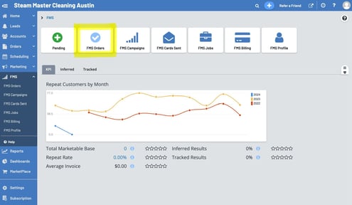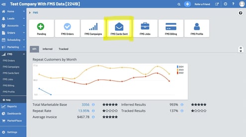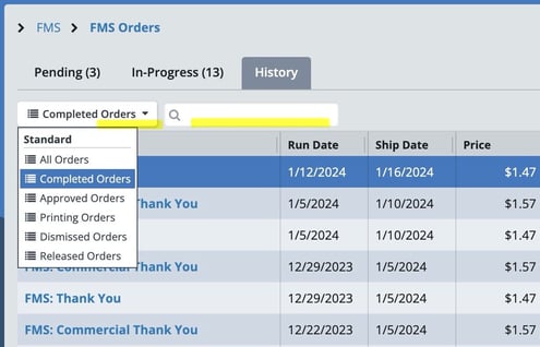 Select the "FMS Jobs" icon to view your history of all orders created with an FMS campaign as the Lead Source.