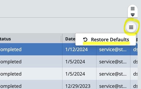 To return the grid back to it's original default settings, select the circular button in the upper right and "Restore Defaults".