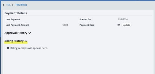 Select the "FMS Billing" icon to view your FMS Approval History and Billing History.