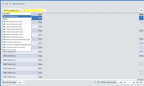 Select the "FMS Cards Sent" icon to view a full list of your history of cards sent.