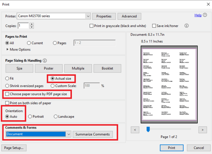 - Uncheck box next to Choose paper source by PDF page size