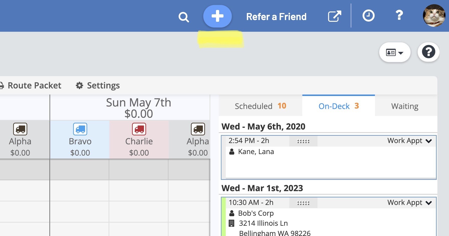 This will take you to the Schedule, with your appointment showing up in the "On-Deck" box.
