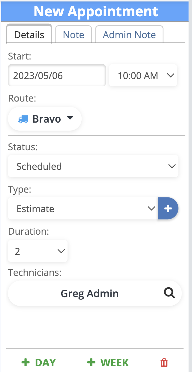 Route: Here you can see what route this appointment is assigned to.