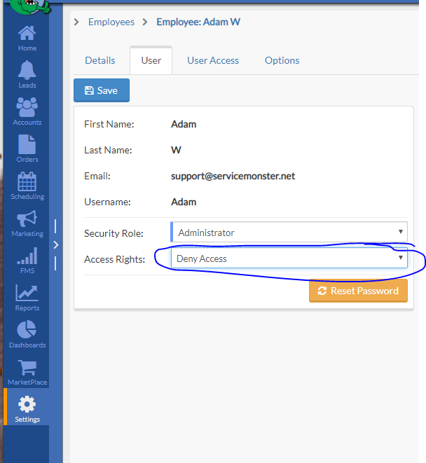 - Then click on the User Access tab and make sure their access rights is set to deny access