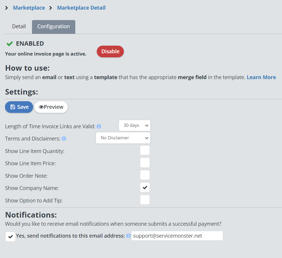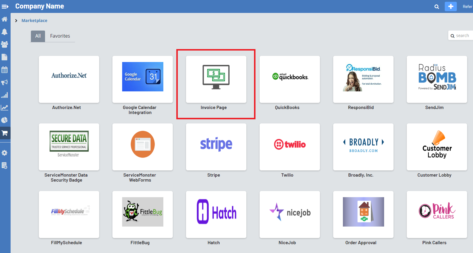 Go to the Marketplace and click on ServiceMonster Invoice Page