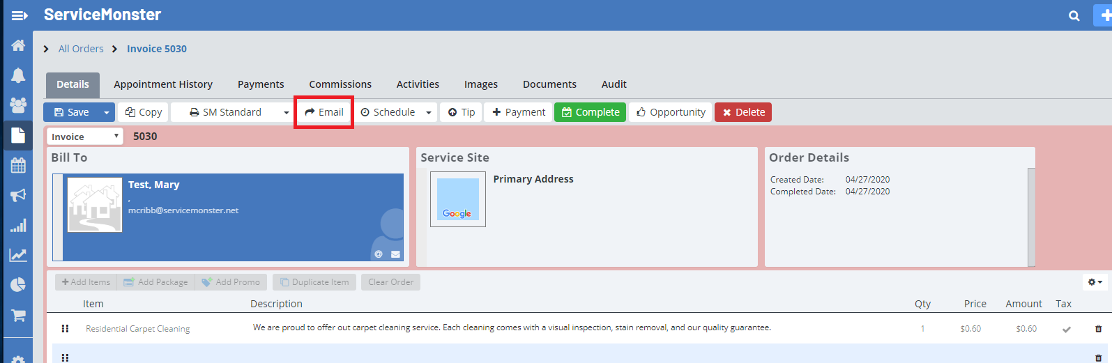 Your company email will get a notification that a customer has made a payment and it will have the payment amount and what order it went towards. The invoice will automatically have the payment applied to it, and it will add a tip to the invoice if the customer decided to do so.